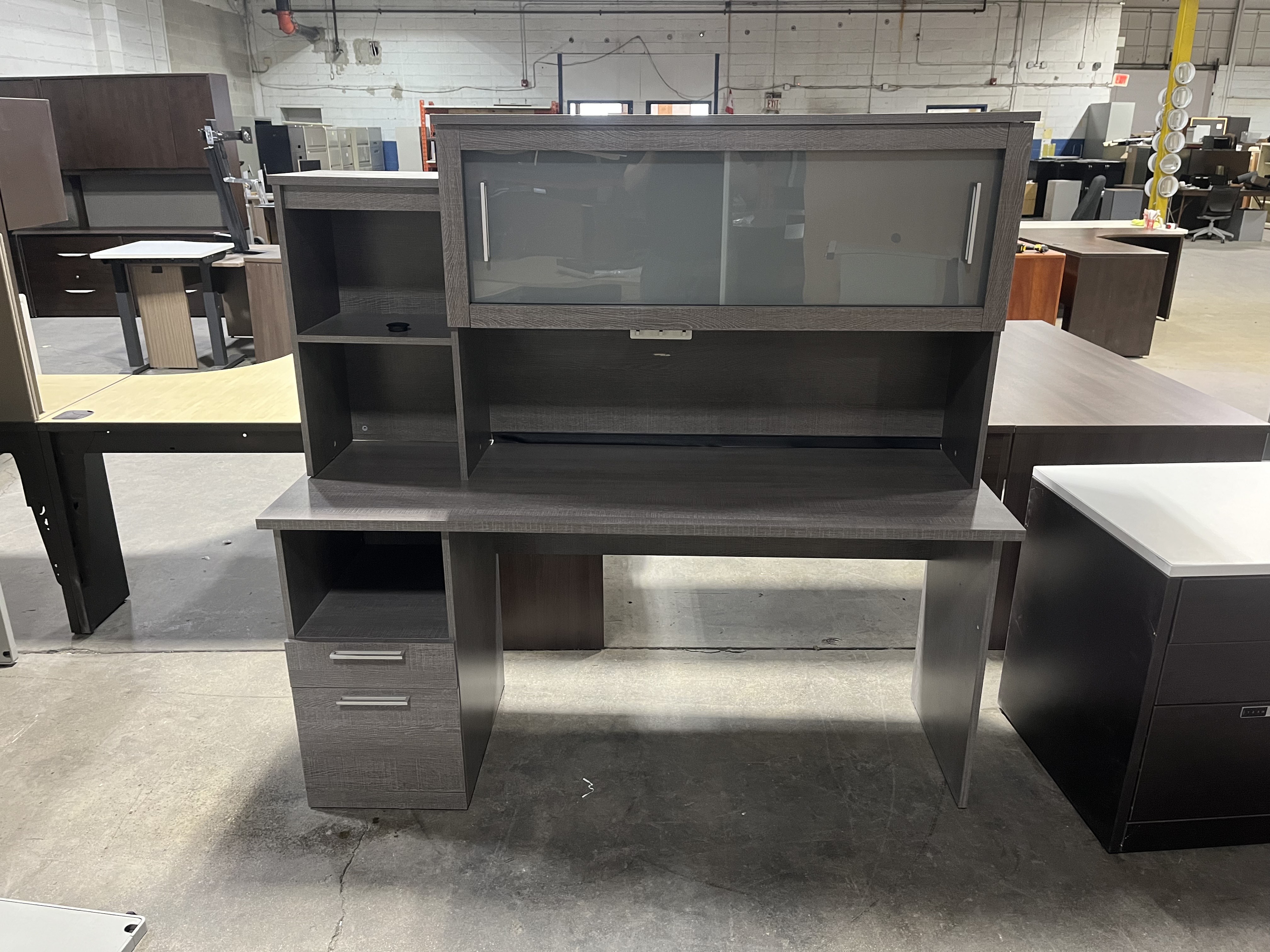 Grey Straight Desk with Hutch
