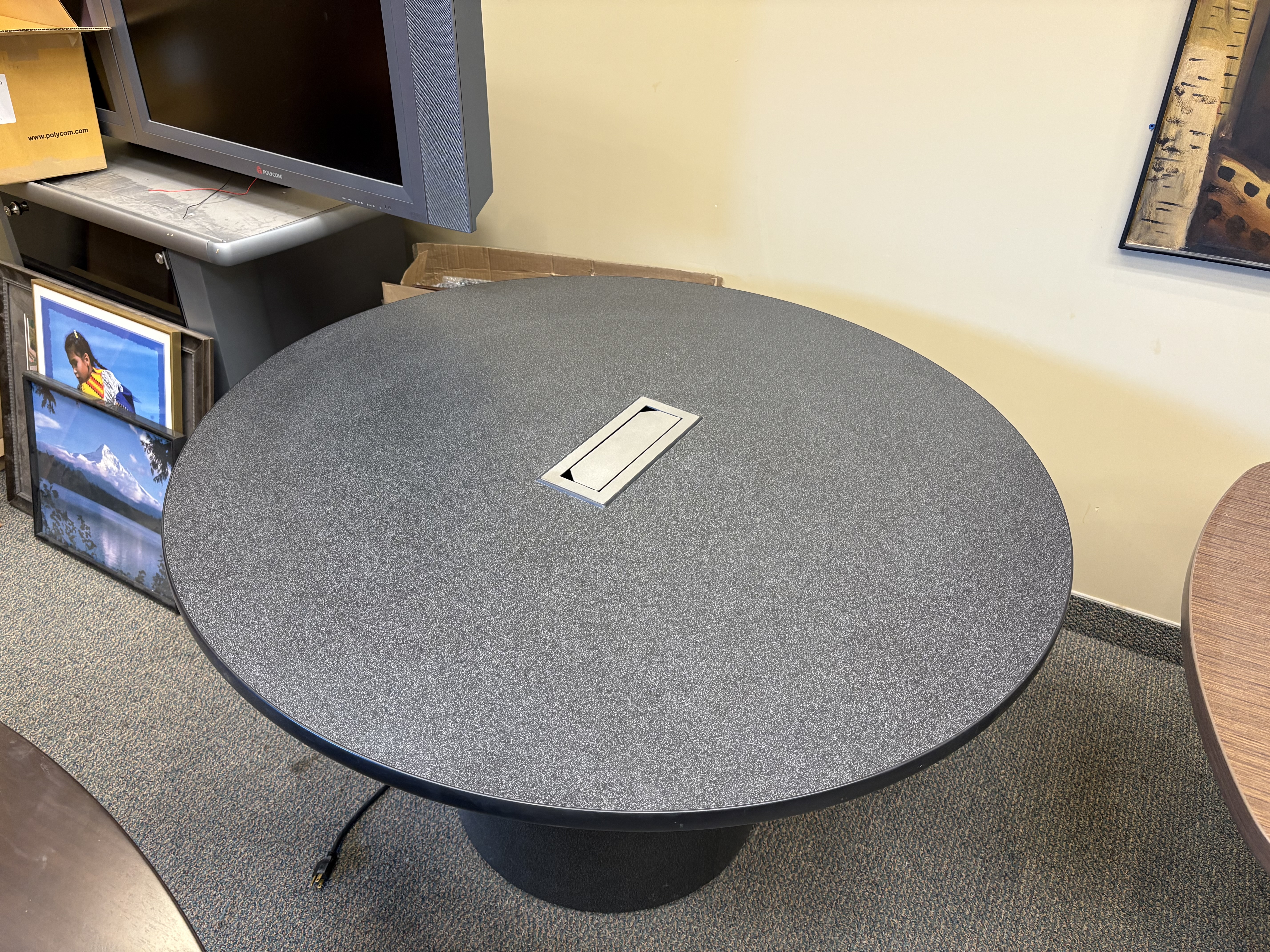 Large Grey Round Table with Power